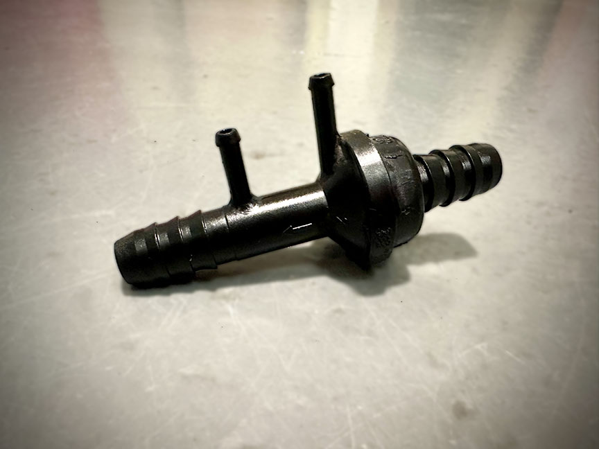 Used in the vacuum system to control the brake booster, HVAC & EVAP systems. If you have idle issues, this may also be faulty on your vehicle. Also, check the vacuum connector hoses. Furthermore, if your line connectors look ‘ok’, they may still need replaced. Before letting the system fail, vacuum check the entire system. You will be able to determine if they are in fact leaking. We use a Mityvac MV8000 tool to test this.