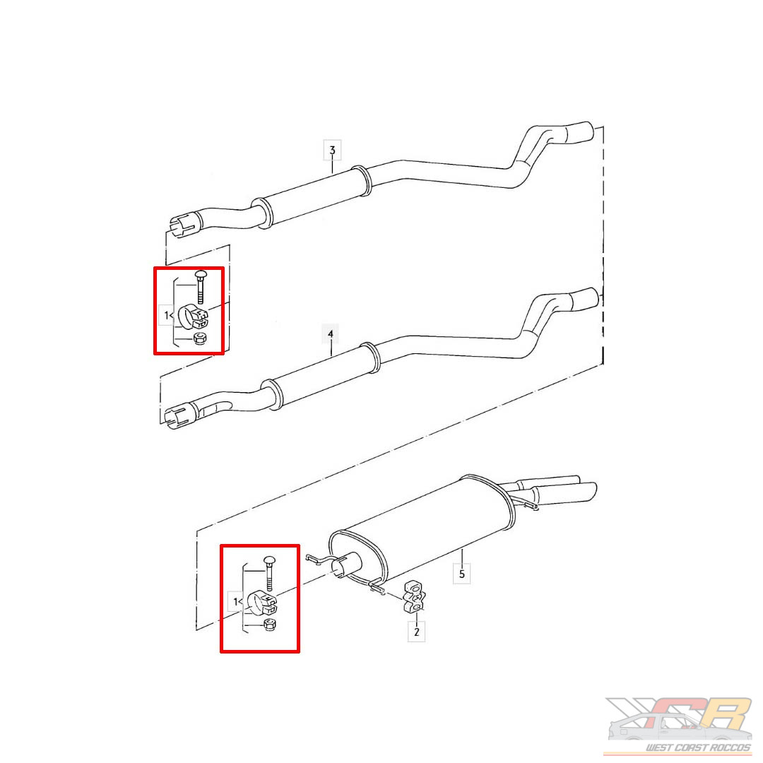 Our OES Scirocco 16v Exhaust Clamp are for 16v exhaust only. 2.25″ pipe. Requires two per car. Made in Germany. Zinc plated. Comes with clamps and hardware, ready to install.