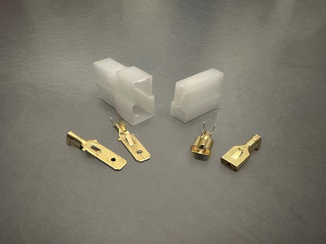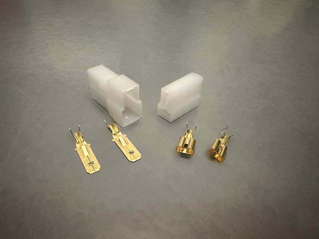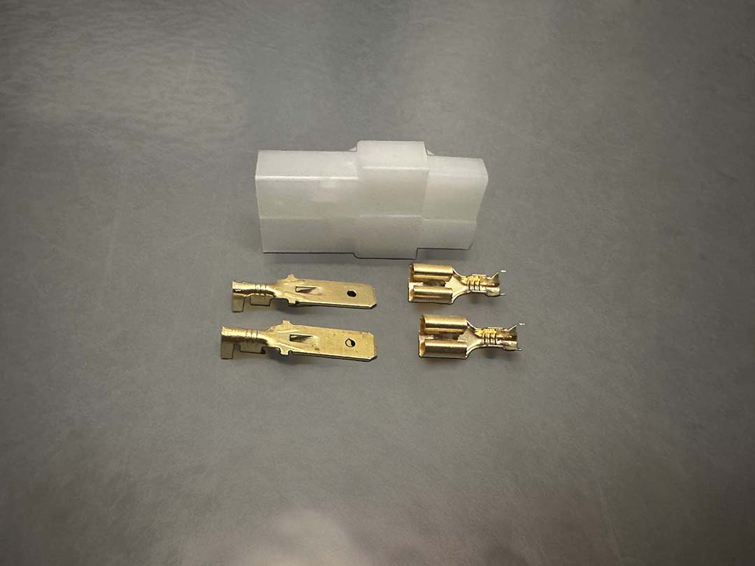 Additionally, this kit has male and female connector housings. Better fit than the OEM connector. This is a flat contact housing for 2 pin 90 degree offset connectors. These are used for connecting harnesses. For example, blower motors, rear harness to front harness, and rear tail lights.