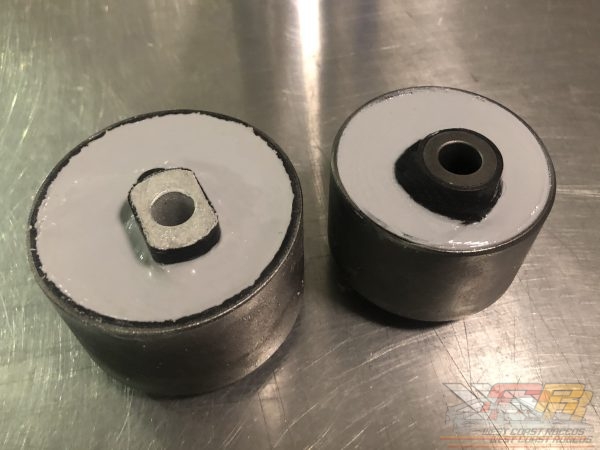 Our reinforced engine mounts and transmission mounts are made in house. We fill each mount with a rubberized solution to do a few different things.
