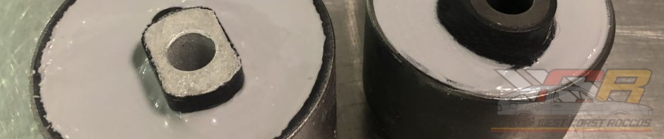 *Note – Pressing in a Mk2 Scirocco 16v transmission mounts ***** Prior to install, measure the thickness of the new mount and the OEM bracket. The new insert mount may be the same thickness of the OEM insert mount. If so, You must leave a 5 mm overhang towards the front of the vehicle (towards the mounting bolts). The Factory OEM mount is slightly thicker and were 16v Scirocco Specific. The center bushing is the same thickness and were offset from the factory. These are not. As no company is manufacturing Mk2 16v trans mounts any more, we are forced to use standard 8v mounts and the difference is approx 5mm-8mm. This will not affect the performance of the mount or cause any adverse side effects. By doing this, it will align the transmission better with the axles. See additional notes below**