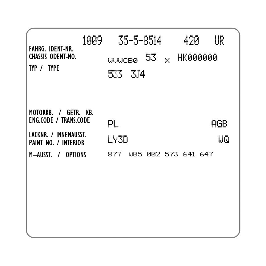 Are you restoring your Volkswagen, Mk1 or Mk2 Scirocco and need to replace the Build Sheet Options Decal? This is for the decal located in your trunk? You’re in the right place. These decals are what you need.