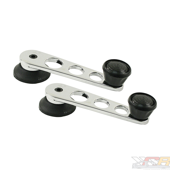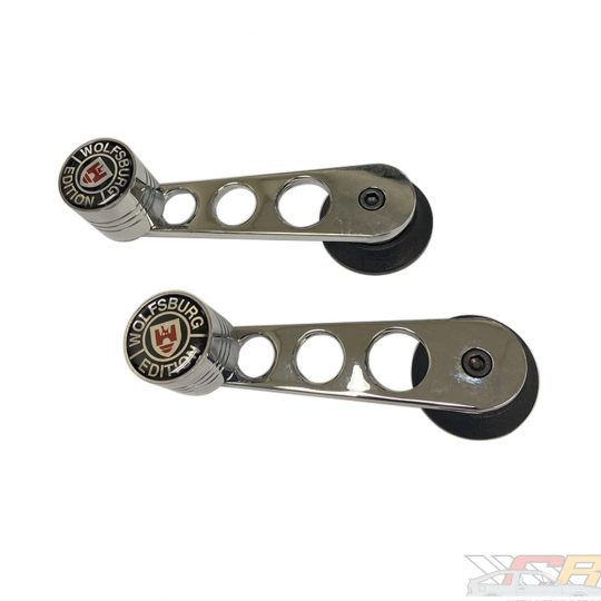 These custom window cranks offer a stylish upgrade over stock handles, with a chrome finish and black knobs that complement most interiors. Designed to fit factory splines, they install easily in place of original cranks. To avoid damaging your door card, make sure you have a window crack washer in between the handle and door upholstery.