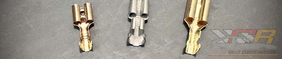 We now have Genuine VW Spade Connector – Non-Insulated w/ Locking Tabs. These are designed to click into harness connectors.For headlights, cooling fans, switches, relays, fuel pump, and pretty much every electrical connector that clips into a female connector.