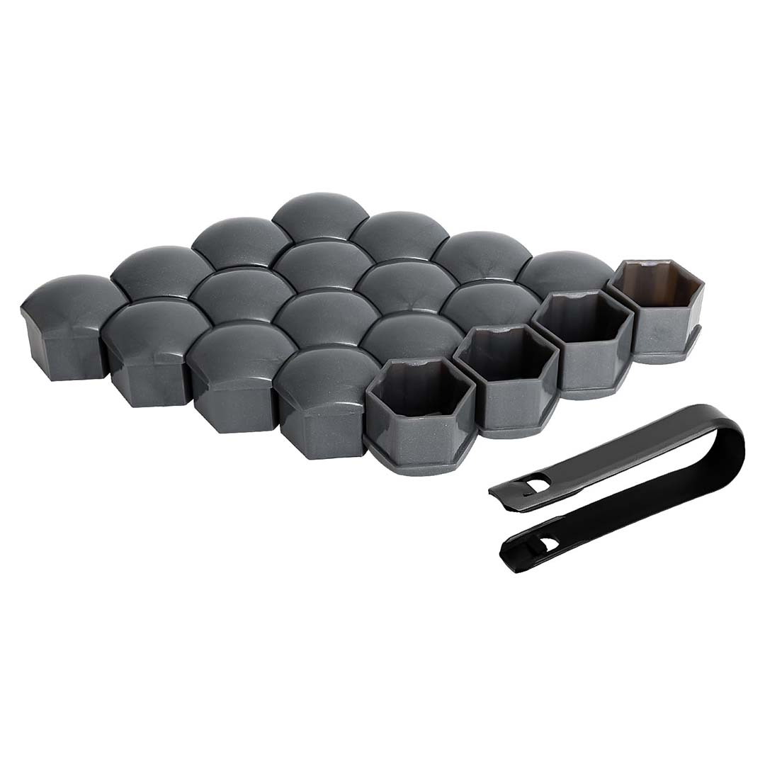 Our 17mm wheel bolt lug cap kits are for protecting your lug bolts from corrosion. They also are used to make your wheel bolt look nice, in case they are corroded. The caps are made from ABS plastic and come in both VW black and Audi gray. Both come in a gloss finish. Kits come with 20 caps and cap pulling tool.