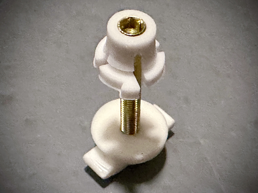 - Place the WRC Mk2 Scirocco European Headlight Adjuster clip open end up on a flat surface and insert the ball end. Press down carefully. You should feel it ‘pop’ into the socket.