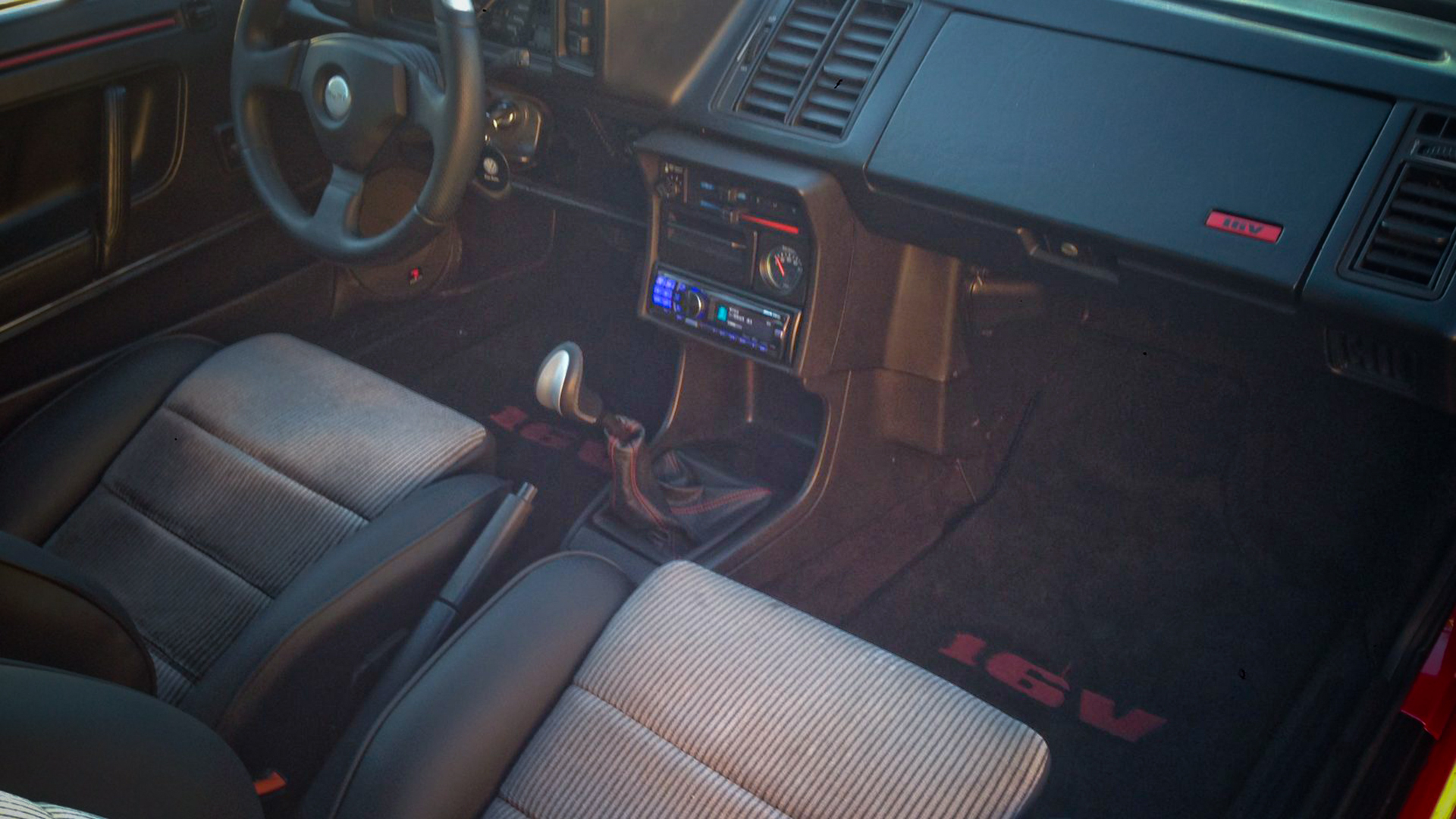 Stock Restored – Momo steering wheel, shift knob and shift boot. Soundproof interior. Alpine stereo system |